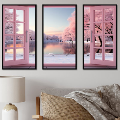 Pink Winter Window By The Lake - Winter Landscape Wall ArtThis beautiful "Pink Winter Window By The Lake" Wall art is printed on premium canvas using the finest fade-resistant ink. With options like Wrapped Canvas, Floating Framed, and Picture Framed Wall Art, we offer a versatile range to cater to your preferences. The Wrapped Canvas Art is stretched tautly over a sturdy wooLatitude Run