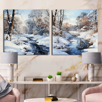 Snow River Winter Scenery - Winter Landscape Square Collage Set Of 3This beautiful "Snow River Winter Scenery" Collage Set of 2 Wall art is printed on premium quality cotton canvas using the finest fade-resistant ink. With options like Wrapped Canvas and Floater Framed Wall Decor, we offer a versatile range to cater to your unique aesthetic preferences. The Wrapped Canvas Art is stretcMillwood Pines