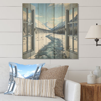 Mountain Winter Window View - Winter Landscape On Wood PrintAdd rustic charm to your home with stunning Landscape & Nature wood wall panels. Handmade with Canadian natural pine wood planks, each piece features a Traditional prints with natural texture, wood's grain, and a rustic wood wall decor. Using UV Ink, this Traditional wood wall art features fine design and visible woodWinston Porter