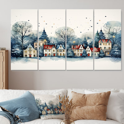 Christmas Village In Winter I - Winter Landscape 4 Piece Wall Art Decor SetThis beautiful "Christmas Village In Winter I" Multipanel canvas art is printed using the highest quality fade-resistant ink on canvas. This Canvas print set of 4 is printed on premium quality canvas, using the finest quality inks which will not fade over time. Each giclee print is stretched tightly over a 1-inch woodThe Holiday Aisle