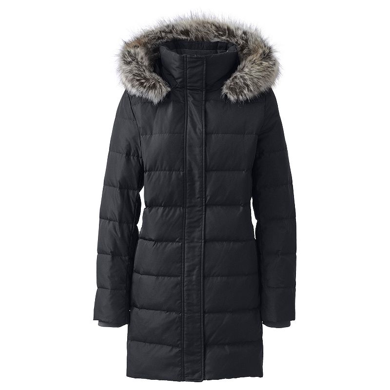 Women's Lands' End Faux-Fur Hood Quilted Long Down Winter Coat, Size: Medium, BlackUpgrade your winter wardrobe with this women's Lands' End down long coat, featuring a faux-fur trimmed hood and an ultra-cozy, waterproof down fill.Finding the perfect fit and size for women's clothing requires basic measurements of your chest, waist, hips and inseam. Use this guide to learn more about sizing and everyLands' End
