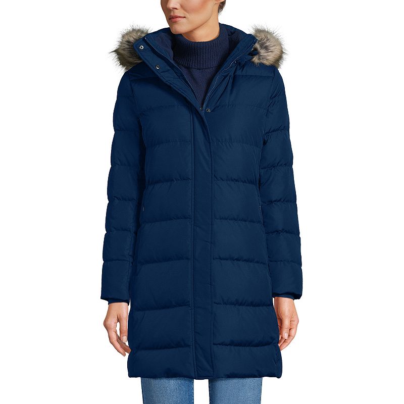 Women's Lands' End Down Winter Coat, Size: Medium, Deep BlueYou'll love the cozy style of this women's Down Winter Coat from Lands' End.Click on this WOMEN'S GUIDE to find the perfect fit and more! FEATURES Water-resistant technology Woven construction Removable hood with removable faux-fur trim Snap & zipper closure Long sleeves Elastic cuffs 1 interior snap pocket, 2 inseam pLands' End