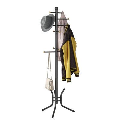 Coat Rack Freestanding, Metal Coat Rack Stand with 12 Hooks and 4 Legs, Coat Tree[Hang Them Up] No more messy entryway. Hang your coats, scarves, bags, purses, and pet leashes on the 12 hooks of this coat tree and tidy up your space [Nice Look] The black pipes and wooden knobs create a stunning coat rack stand that will impress your guests [Durable] Quality steel pipes with a rust-resistant coating17 Stories