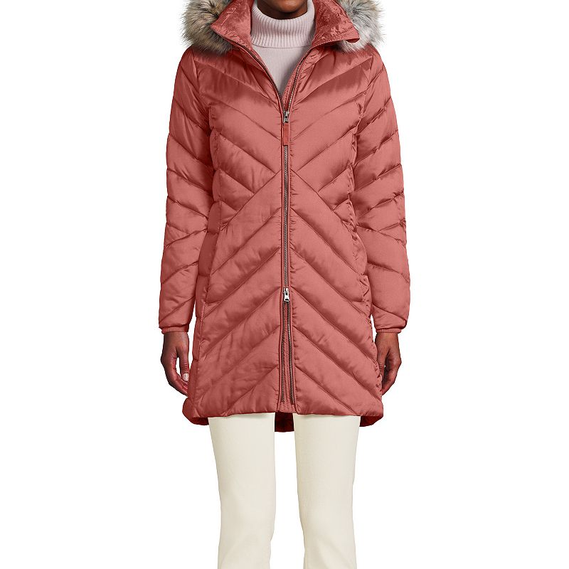 Women's Lands' End Down Winter Coat, Size: Large, Rich BrownYou'll love the cozy style of this women's Down Winter Coat from Lands' End.Click on this WOMEN'S GUIDE to find the perfect fit and more! FEATURES Water-resistant technology Woven construction Removable hood with removable faux-fur trim Snap & zipper closure Long sleeves Elastic cuffs 1 interior snap pocket, 2 inseam pLands' End
