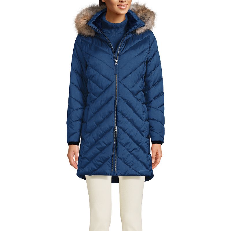 Petite Lands' End Down Puffer Faux Fur Trim Hooded Long Winter Parka Coat, Women's, Size: XL Petite, Deep BlueGear up for the coming winter with this women's down puffer faux fur trim hooded long winter parka coat from Lands' End.Click on this WOMEN'S GUIDE to find the perfect fit and more! Gear up for the coming winter with this women's down puffer faux fur trim hooded long winter parka coat from Lands' End. Click on this WOMLands' End