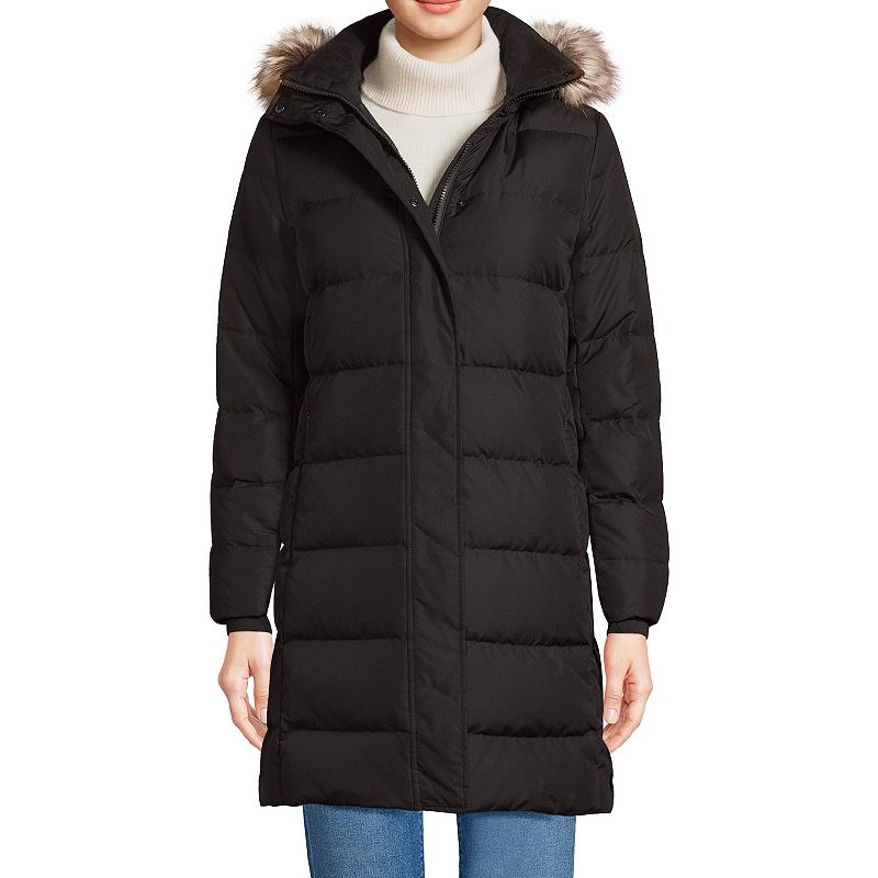 Petite Lands' End Faux-Fur Hood Quilted Long Down Winter Coat, Women's, Size: Medium Petite, BlackUpgrade your winter wardrobe with this petites' Lands' End down long coat, featuring a faux-fur trimmed hood and an ultra-cozy, waterproof down fill.Finding the perfect fit and size for women's clothing requires basic measurements of your chest, waist, hips and inseam. Use this guide to learn more about sizing and everLands' End