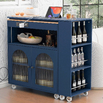Kitchen Island, Rolling Kitchen Cart, Coffee Station with Rubber Wood TopTwo drawers gives more functional store for utensils and tools Winston Porter Base Finish: BrownWinston Porter
