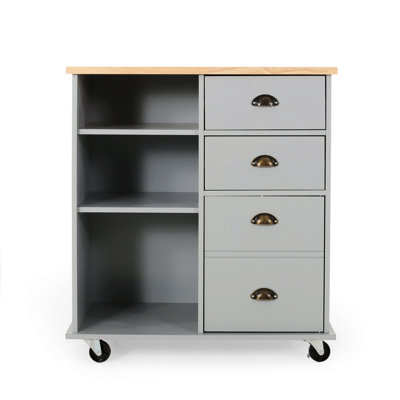 Lalitha Rolling Kitchen Island with Solid + Manufactured Wood TopThis vintage kitchen island, featuring clean lines and stylish modern handles, the kitchen cart offers the look, feel and design of a truly contemporary piece, coupled with a minimalistic yet sophisticated structure, bringing a simple style that emphasizes comfort and functionality for the living room, kitchen, and dinEbern Designs