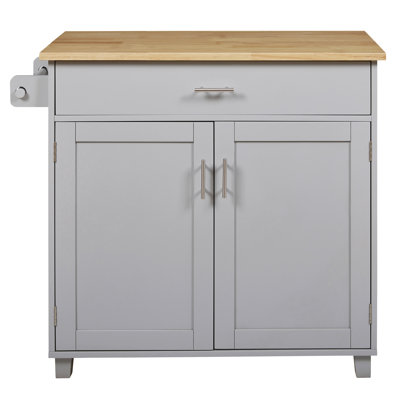 Rolling Kitchen Island with Rubber Wood Top, Kitchen Cart with Drawer and ShelfQuality is paramount in the kitchen island's construction, combining high-grade MDF with the elegance of a rubber wood tabletop. Resistant to the daily wear of stains and water, it stands as a testament to durability. This exceptional island features two innovative slide-out shelves with robust metal rails, enabling yoRed Barrel Studio