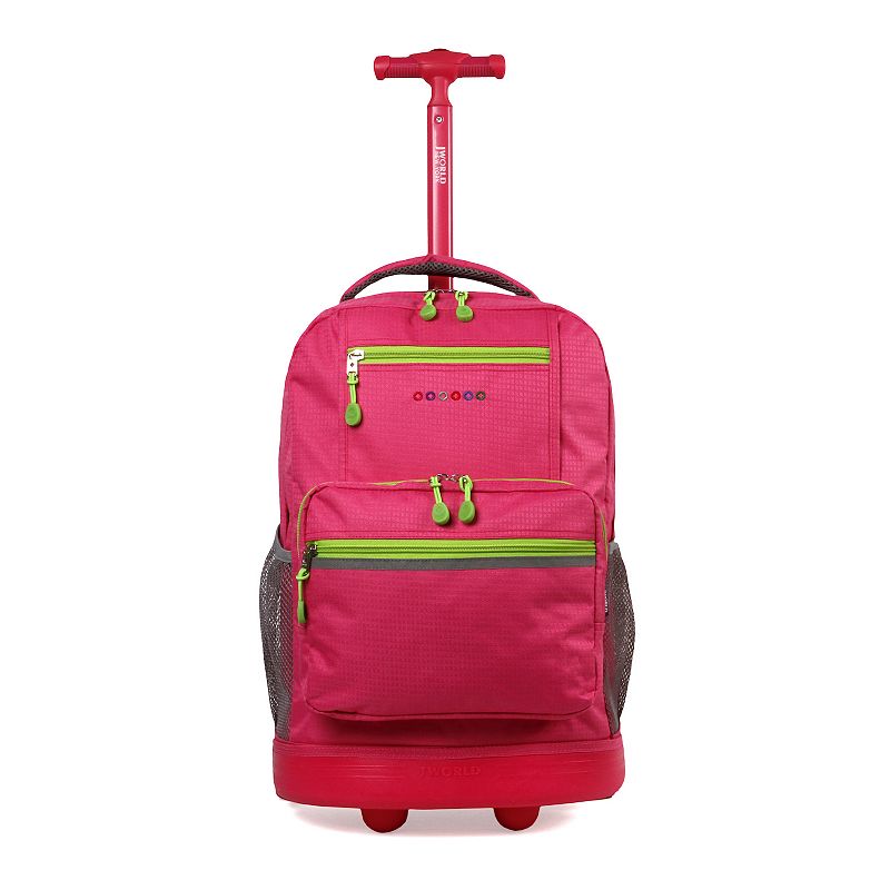 J World Sunlight Rolling Backpack, PinkStay organized with this J World Sunlight Rolling Backpack.Stay organized with this J World Sunlight Rolling Backpack.FEATURES Recessed three stage locking handle with push button and padded grip handle Front pocket organizer with pencil holder, key fob and zipper pocket Air mesh cushion padded shoulder straps and backJ World
