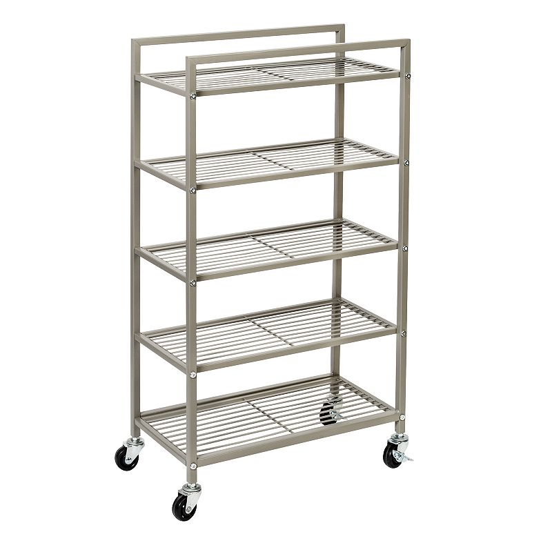 Honey-Can-Do Rolling 5-Tier Bathroom Storage Cart, Satin NickelKeep towels, lotions, and more essentials on hand with this handy five-shelf rolling bathroom cart from Honey-Can-Do. Keep towels, lotions, and more essentials on hand with this handy five-shelf rolling bathroom cart from Honey-Can-Do. Five slatted shelves resist moisture and encourage air circulation Swivel wheels forHoney-Can-Do