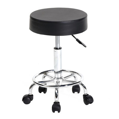 Rolling Height Adjustable Lab StoolDo you need a comfortable and fashionable bar stool? This round bar stool is made of high-quality PU leather & amp; sponge & amp; chrome-plated material, durable and soft for you to sit on. It features five casters, so it is easy for you to move it quickly. It is brand new and high quality, so it is the best choice forInbox Zero