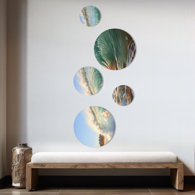 Rolling Surf Waves I - Waves Round Wall Art Set Of 5Elevate your space with this Modern metal wall art set of 5. Crafted from premium metal, each piece features intricate designs that add a modern touch to any room. Perfect as a cohesive set or displayed individually, this large Modern metal wall decor enhances your home or office with a touch of elegance. Durable and eBeachcrest Home