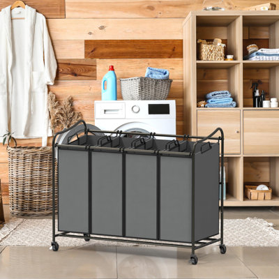 4-Bag Heavy Duty Laundry Sorter Rolling Cart4-Bag Heavy Duty Laundry Sorter Rolling Cart Hokku Designs Color: Dark GrayHokku Designs