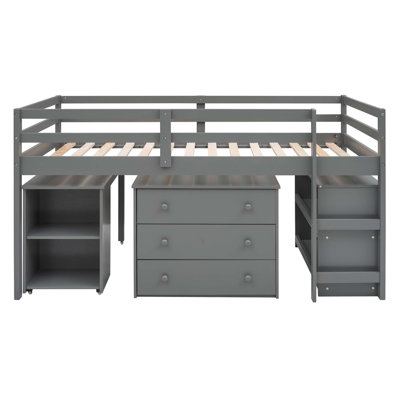 Low Study Loft Bed With Cabinet And Rolling Portable DeskCrafted with high grade manufactured pinewood, enjoy the Loft bed in the shades espresso, gray and white to match the color scheme of any room. Designed with a loft structure, enjoy the space underneath used to house storage drawers and a portable desk fitted with base wheels. When the desk is needed, simply roll it ouLatitude Run