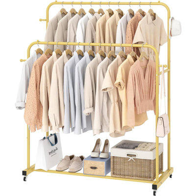 Oritse 39.8'' Metal Rolling Clothing RackOur Double Rods Garment Rack with stable structure and is made of high-quality metal. High & low-hanging rods accommodate clothing of varied lengths. This closet is perfect for planning your everyday outfits and keeps everything organized and handy. Great storage help for a laundry room, bedroom, entryway, living room,Rebrilliant