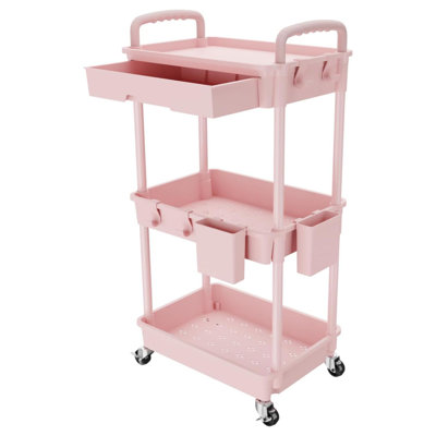 3 Tier Rolling Utility Cart With DrawerStorage shelves Save space and declutter any room with this storage cart with ample shelf space to hold household items or office supplies.3 tier cart be used perfecty for home, office, salon or garage. Oganizer cart is multi-functional and can be used for a variety of purposes depending on your needs. Elaine Mercure FElaine Mercure