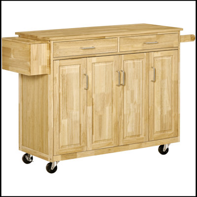 Kitchen Island on Wheels, Rolling Cart with Rubberwood Top, Spice Rack, Towel Rack and DrawersProduct Features Space Saving Storage: Do you have too many utensils and silverware to fit in your drawers? This small kitchen island is great for keeping kitchenware organized, with two easy-glide drawers, two concealed cabinets, a towel bar, and a spice rack. Customize Your Space: This kitchen island cart features twLark Manor