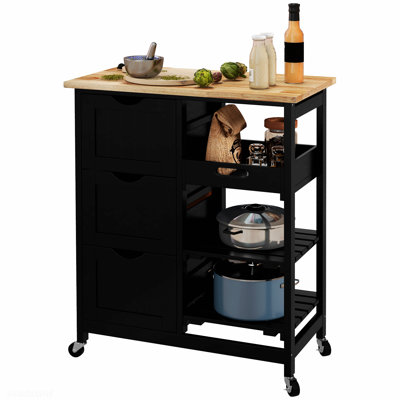 41" Modern Rolling Kitchen Island On Wheels, Utility Cart Storage Trolley With Rubberwood Top & Drawers, BlackA versatile addition to any kitchen, this island features a durable surface that withstands daily use, ample storage solutions to keep clutter at bay, and a flexible design that can be customized to suit your unique needs and style preferences. Winston Porter Base Color: WhiteWinston Porter