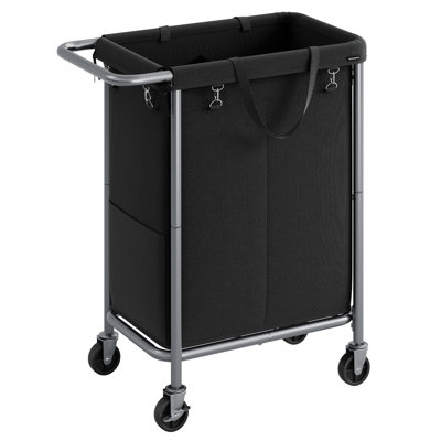 Metal Rolling Laundry Hamper with HandlesSimplify your laundry routine with this modern double compartment laundry basket. Designed with two spacious compartments, sturdy steel frame, and tear-resistant liner, it's perfect for sorting and transporting laundry in multi-person households. Latitude Run Color: Black, Size: 31.89" H x 27.2" W x 15.39" DLatitude Run