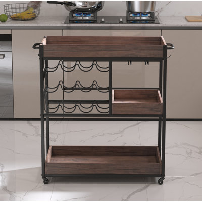 Bolles Mobile Rolling Kitchen Island Trolley Serving Cart with Underneath DrawerMultiple Storage Solution: This kitchen island on wheels features a storage drawer for small kitchen accessories and utensils, a slide-out wire storage basket, 2 pull out trays, and a fixed shelf. Each storage tray can be used as an independent serving tray. Latitude RunLatitude Run
