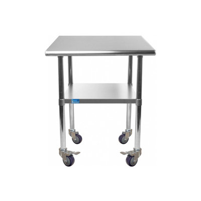 30x15 Rolling Prep Table With Stainless Steel TopA stainless steel utility work table with wheels is a great addition to any home or business. it is perfect for a variety of tasks, including a workbench, prep table, or general-purpose table. the included bottom shelf provides additional storage space. some assembly is required. NSF certification allows the table to bAmgood
