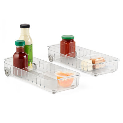 YouCopia RollOut Fridge Caddy, 6 x 15 2-Pack, Rolling Fridge Organizer with Adjustable DividersMakes your refrigerator a more organized, useful place. RollOut Fridge Caddy's dividers create three adjustable compartments let you fit all your snacks and sauces in one convenient location, just how you like them. The unique rolling design and sturdy handles make it easy to roll the caddy in and out, or carry whereveYouCopia