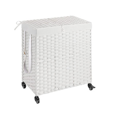 Hand Woven Rolling Laundry Hamper with HandlesThe bright natural finish and delicate weaving are suitable for any furniture design style and will work perfectly in your bedroom, bathroom, or laundry room. Gian Color: WhiteGian