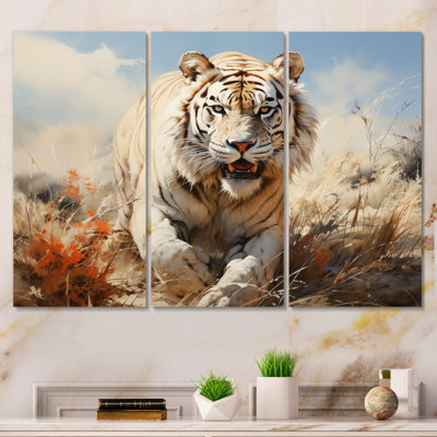 White Tiger On Rolling Grassland I On Canvas 3 Pieces PrintThis beautiful "White Tiger on Rolling Grassland I" wrapped canvas art set is printed using the highest quality fade-resistant ink on canvas. This wall art set is printed on premium quality cotton canvas, using the finest quality inks which will not fade over time. Each giclee print is stretched tightly over a 1-inch wBungalow Rose
