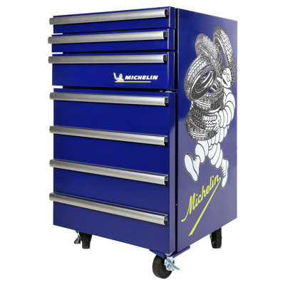 Michelin Tool Chest Fridge 1.8 cu ft Rolling Fridge with Tool Drawers BlueThis unique blue mini fridge with licensed Michelin artwork logo has everything you need to keep your tools organized for work and snacks and beverages chilled for relaxing afterwards. With three tool drawers, swivel castors, and reliable compressor cooling, it's the perfect fit for any garage or workshop. KoolatronKoolatron