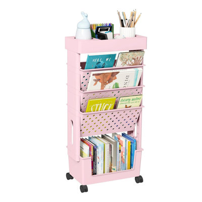 5-Tier Mobile Bookshelf,Rolling Bookcase Book Storage Rack,Movable File Folder with Wheels for HomeMulti-tier Organization Our organizer book cart has 5 tiers of shelving baskets that provide plenty of storage space for all your necessities. Keep your pens, water cup, and small utilities on the top shelf and all your magazines, notes, envelopes, books, files, documents, bills, and papers on the other 4 shelves. SlimAMIZOY