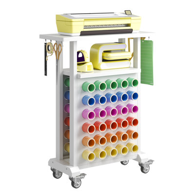 Rolling Craft Storage Cart - Versatile Organizer with 30 Vinyl Rolls for Cricut MachinesElevate your crafting experience with our Rolling Craft Storage Cart, designed for Cricut enthusiasts. This sturdy, white-finished organizer features 30 vinyl roll holders and a central shelf, perfect for a clutter-free craft room. With smooth-rolling wheels and a multifunctional design, it's the ultimate workspace solGetaway Ride Trade