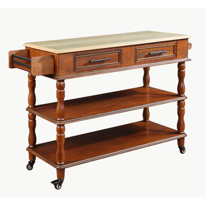 Triple-Cabinet Rolling Kitchen Island on Wheels, Kitchen Cart with Storage Shelf Adjustment, BrownSpace Saving Storage: Do you have too many utensils and silverware to fit in your drawers? This island table for kitchen offers a large drawer to hold utensils, napkins, or dishware. The two storage cabinets with an interior adjustable shelf provide spacious storage for dry goods or cleaning supplies.Additional ChoppinLatitude Run