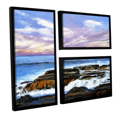 'Rolling Water' 3 Piece Framed Painting Print on Wrapped Canvas Set'Rolling Water', 3 Piece Floater Framed Canvas Flag Set is a high-quality canvas print featuring a colorful and vibrant view of crashing waves that will add a touch of warmth and serenity to any home or office. Rosecliff HeightsRosecliff Heights