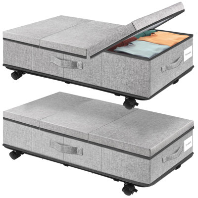 Rolling Underbed Storage Containers With Lids, Under Bed Shoe Storage Bins Organizer With Reinforced Metal Bottom Support And Three Handles, 2 Pack GrThese under-bed storage bins come with four 360 silent rotating wheels and a wrench for reinforced use, two of which have locking switch buttons and functions, combined with three sturdy handles that you can easily slide anywhere and lock.Each under bed storage bin measures 31.1 X 15.7 X 7.3 inches (including the heighSHAY CABINETRY, INC.