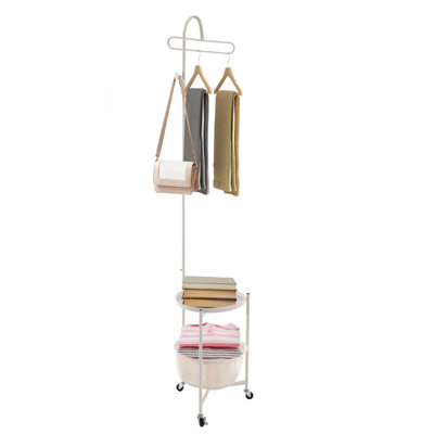 Leahrae 70.9'' H Metal Rolling Clothing RackOur coat rack is a fine piece of home storage that blends practical functionality with artistic beauty. This product adopts the 3-in-1 design mode of hanging rack, tray and clothes basket, which can help you classify scarves, clothes, bags, etc. for neat and orderly clothing organization. Latitude Run Color: WhiteLatitude Run