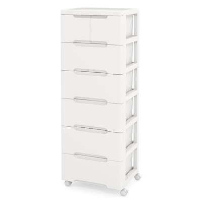Inbox Zero 1 Pcs 7-drawer Plastic Rolling Storage Cart With 4 Universal Wheels Dresser CabinetEfficiently organize your essential items with our rolling storage cabinet, perfect for both home and office settings. Made of quality plastic, this vertical storage unit features 7 drawers that can accommodate a variety of items, from office supplies to craft materials. Each drawer slides smoothly, allowing for easy aInbox Zero