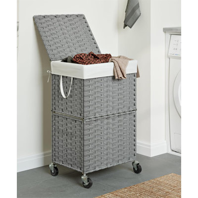 90L Large Laundry Hamper With Wheels,Rolling Laundry Basket With Lid And Renovable Liner BagThe size is : 16.1"(L) x 12.6"(W) x 26.4"(H),Wheel height2.4".It is suitable for every corner and space in the bedroom, bathroom, laundry room, cloakroom,etc. It can maximize the use of space,while making the room more beautiful and tidy.The laundry basket comes with a dust lid which can keep the smells and dust out ,pCOOREL