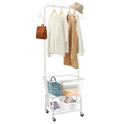 Metal Rolling Laundry SorterMaximize your space and keep your clothes organized with our multi-functional coat rack and rolling laundry basket. Designed for convenience and durability. FANGCHANG Color: WhiteFANGCHANG