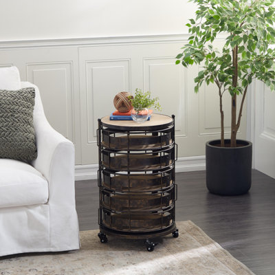Metal Rolling Circular 6 Shelf Kitchen Brown Storage Cart with Adjustable ShelvesFurnished with wheels, it is offers easy transport to your home corners. Brown storage cart features 5 drawers with 10 lbs weight limit. Suitable for indoor use only. Maximum weight limit is 50 lbs. This is a single brown colored rolling cart. Iron storage cart features 6 shelves. Farmhouse style. 17 Stories17 Stories