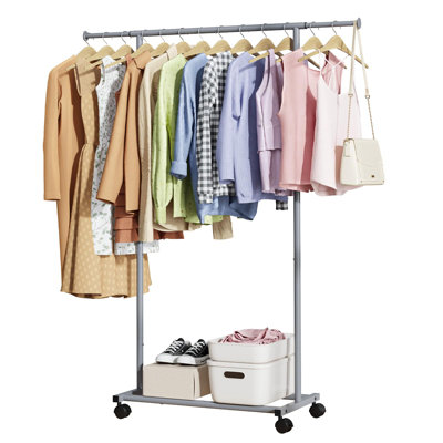 Heger Metal Adjustable Rolling Clothing RackVersatility is key! The rack is designed to fit a variety of scenarios. Whether you need extra storage space in your bedroom, a display rack in a retail store, or a portable wardrobe when traveling, our clothes racks can meet your needs. Rebrilliant Color: GrayRebrilliant
