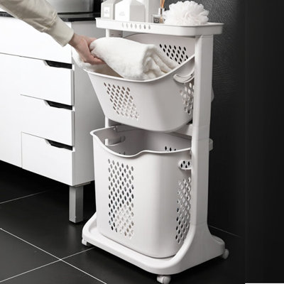 Rebrilliant 2 Tier Plastic Rolling Laundry Hamper with WheelsThis multi-functional rolling laundry hamper cart is made of high-quality PP material, which is very durable and sturdy, no odor and not easy to deform. Universal roller design, equipped with 4 360 rotatable pulleys, can be moved freely and easy to operate and install. The storage baskets are designed with carrying hanRebrilliant