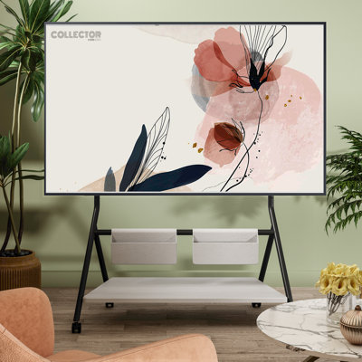 Nandika Rolling TV stand with Wooden Storage Shelves, Floor TV Stand for 65-88 Inch TVAre you tired of the same old decor in your home? Do you want to add a unique artistic touch to your living room? The Collector Series mobile TV stand will bring you an unprecedented visual and practical experience! Rebrilliant Color: BlackRebrilliant