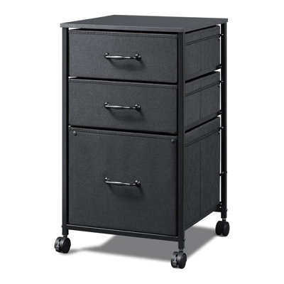 Mobile File Cabinet, Rolling Printer Stand With 3 Drawers, Fabric Vertical Filing Cabinet Fits A4 Or Letter Size For Home Office, BlackDesigned to keep office machines, papers, documents and suppliers organized, this rolling cabinet can be fixed next to or under a desk, and the stylish and modern finish is easily suitable for office or home study. 17 Stories Color: Black17 Stories