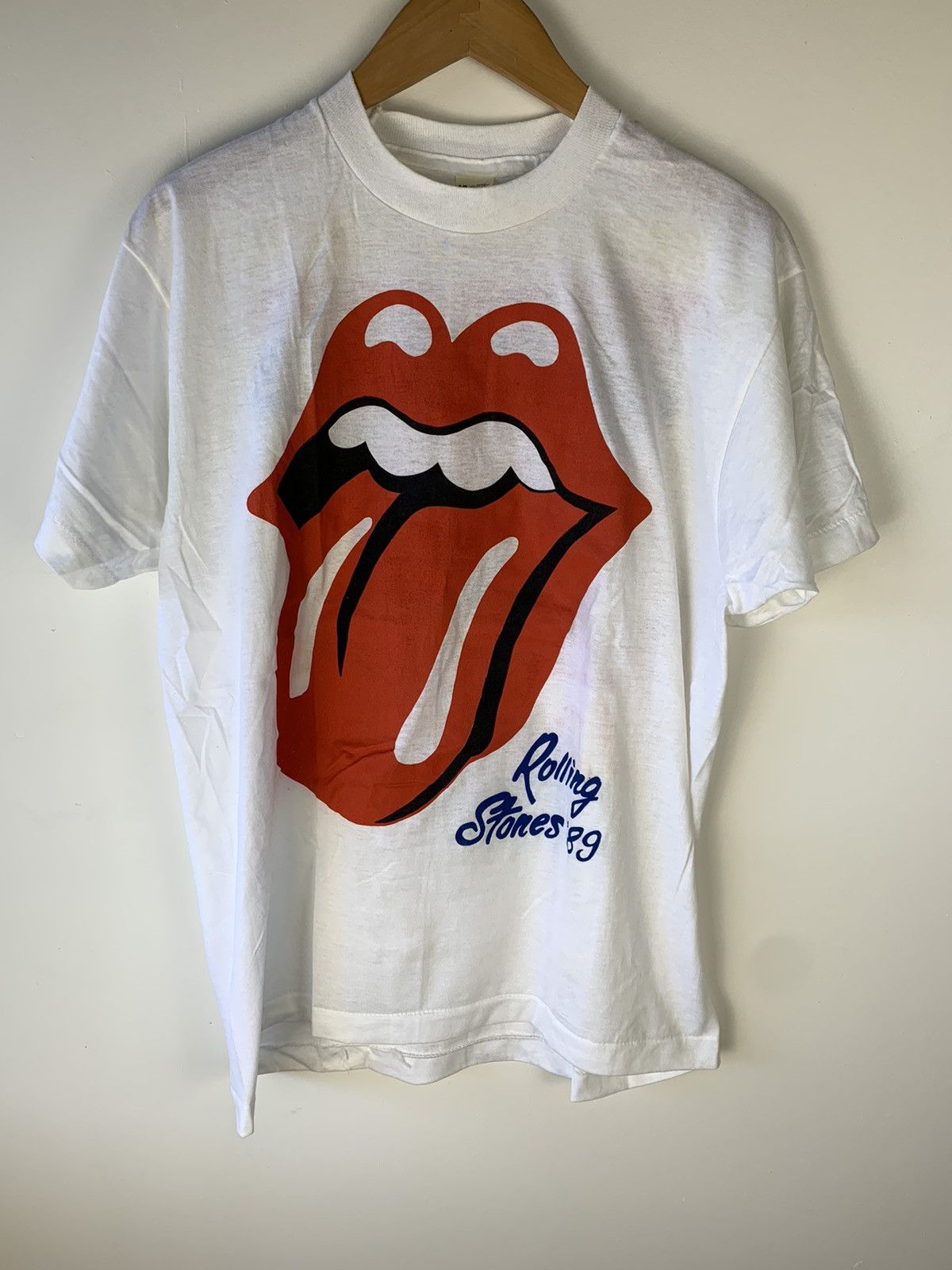 Band Tees x Vintage 1989 Rolling Stones Steel Wheels Tour Tee in White, Men's (Size Medium)Some Yellowing And Markings Tagged Xl Fits A Medium Pit To Pit 20 Inches Front Collar To Bottom Hem 24.5 Inches | Band Tees x Vintage 1989 Rolling Stones Steel Wheels Tour Tee in White, Men's (Size Medium)Band Tees x Vintage