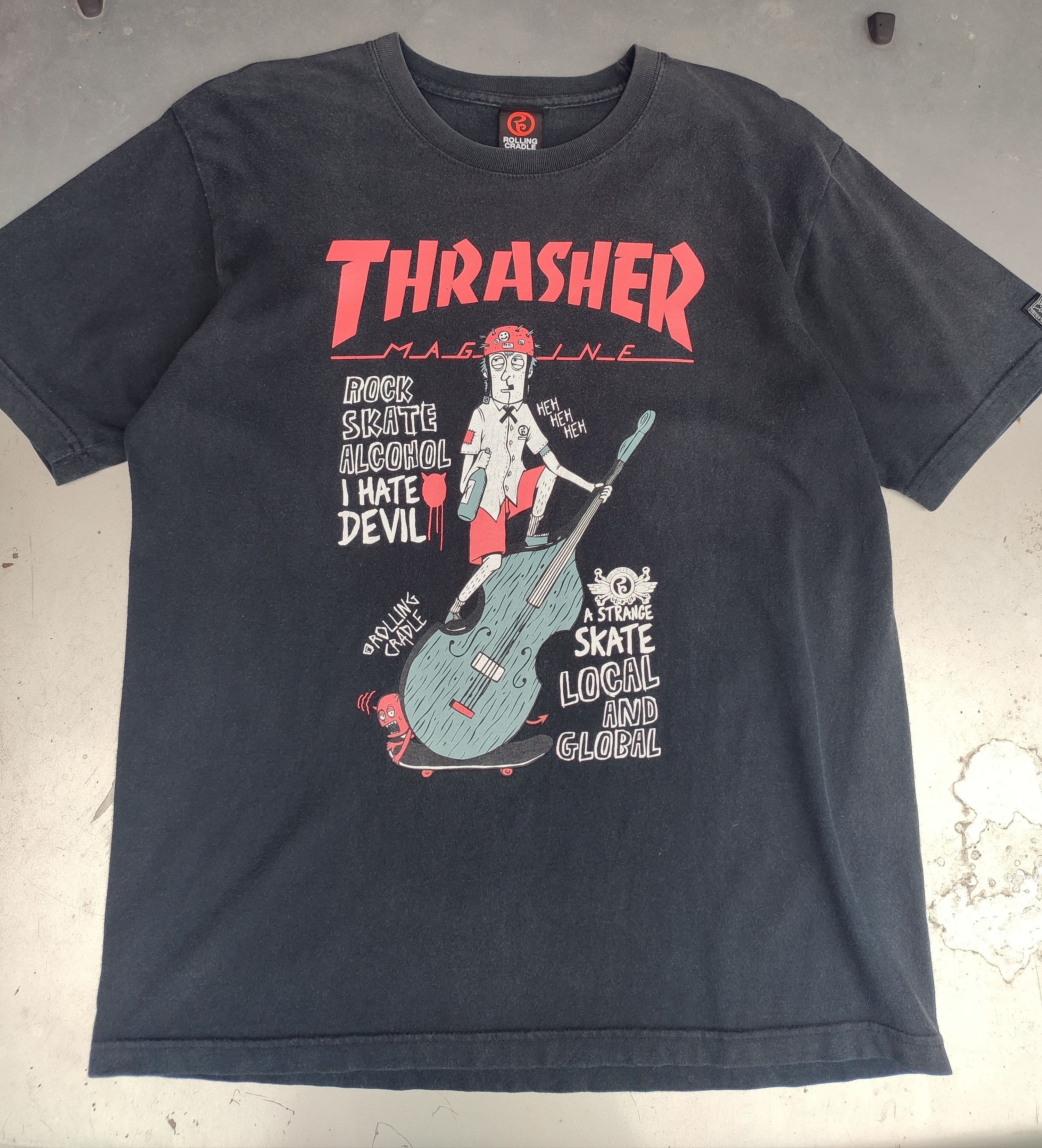Thrasher x Vintage Trasher T Shirt Skateboard Magazine Rolling Cradle in Faded Black (Size Large)100% Cotton Fit To L Measurement (Manual Size) : - Width (Armpit To Armpit) : 21.5" Inches - Length (Shoulder To The End Of Garment) : 28.5" Inches Condition : - One Pin Hole At Shoulder - No Stain Nice Design Item Ref Number : 95 Authenticity ? If You Have Any Doubts Please Contact Help@grailed. Com And They Can VerifThrasher x Vintage