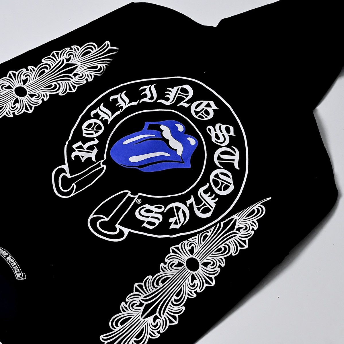Chrome Hearts Rolling Stones Blue Zip Up Hoodie Black in Black Blue, Men's (Size Large)name: Chrome Hearts Hoodie Zip Rolling Stone Size: L Color: Black Blue Condition: Details: The Chrome Hearts Zip-Up Hoodie Is A Premium Blend Of Street Style And Luxury. Made From High-Quality, Thick Cotton, It Offers Both Comfort And Durability. The Hoodie Features The Brand's Iconic Cross Motifs And ""chrome Hearts""Chrome Hearts