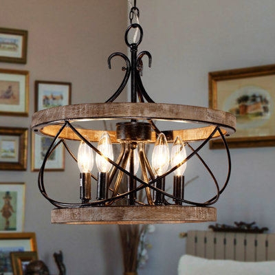 Jymere 5 - Light Wood Chandelier with Metal Frame, Solid Wood LightIntroducing our stunning wood chandelier, a true embodiment of elegance and craftsmanship. This exquisite drum-shaped chandelier features a captivating blend of wood and metal, adding a touch of rustic charm to any space. With its 5 light fixtures, it offers ample illumination for your living area, dining room, or foyeHouse of Hampton
