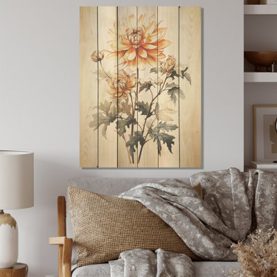 Orange Dahlia Dreams In Bloom - Dahlia Wood Wall Art On Natural Pine WoodWood art printed on wood planks is a mesmerizing fusion of nature's intrinsic allure and artistic ingenuity. Each piece starts with a careful selection of wooden planks, chosen for their distinctive grains, knots, and textures, transforming them into canvases of rustic beauty. We employ the highest quality 6-color CanoOphelia & Co.