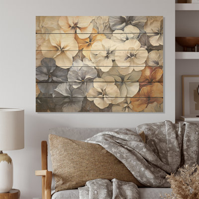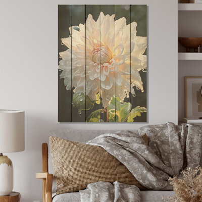 A Dance Of White Dahlias Florescence - Dahlia Wood Wall Art On Natural Pine WoodWood art printed on wood planks is a mesmerizing fusion of nature's intrinsic allure and artistic ingenuity. Each piece starts with a careful selection of wooden planks, chosen for their distinctive grains, knots, and textures, transforming them into canvases of rustic beauty. We employ the highest quality 6-color CanoOphelia & Co.
